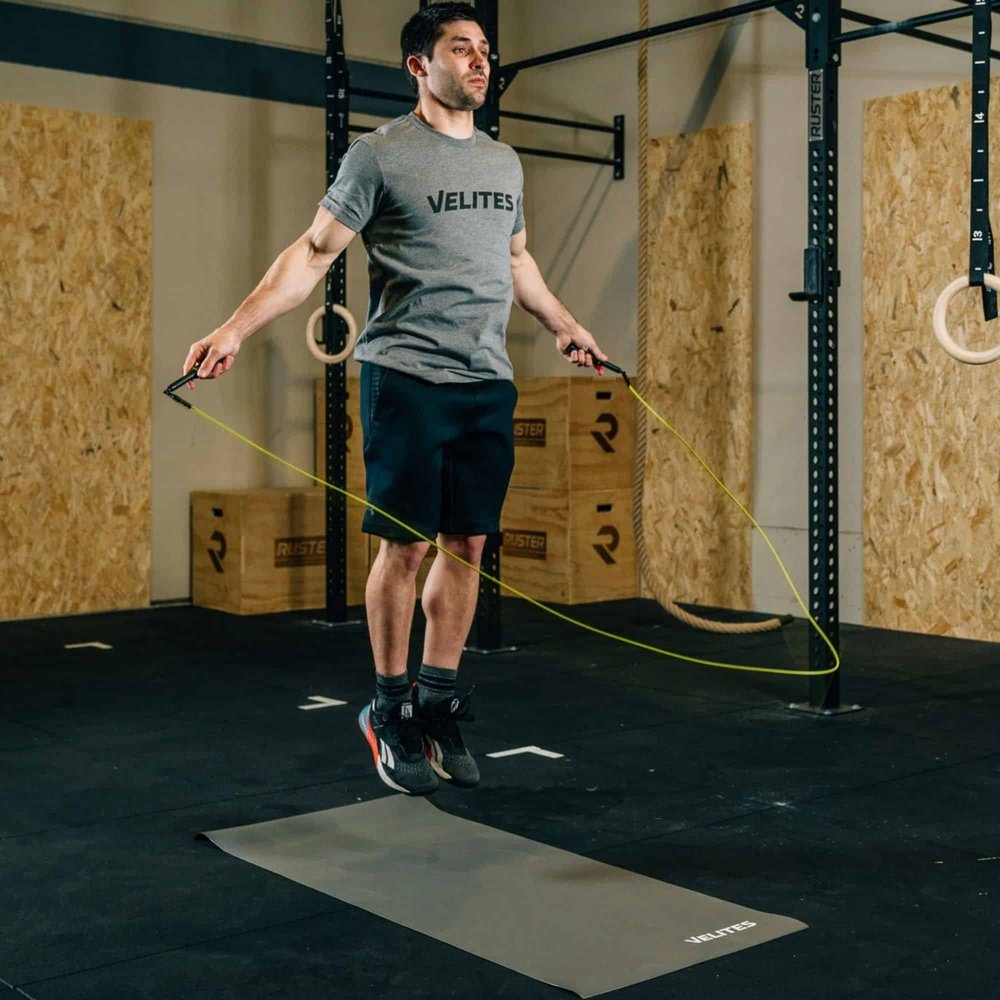 Ansonsten kannst du die Velites Sprungmatte als Unterlage nutzen, um dein Springseil zu schützen.