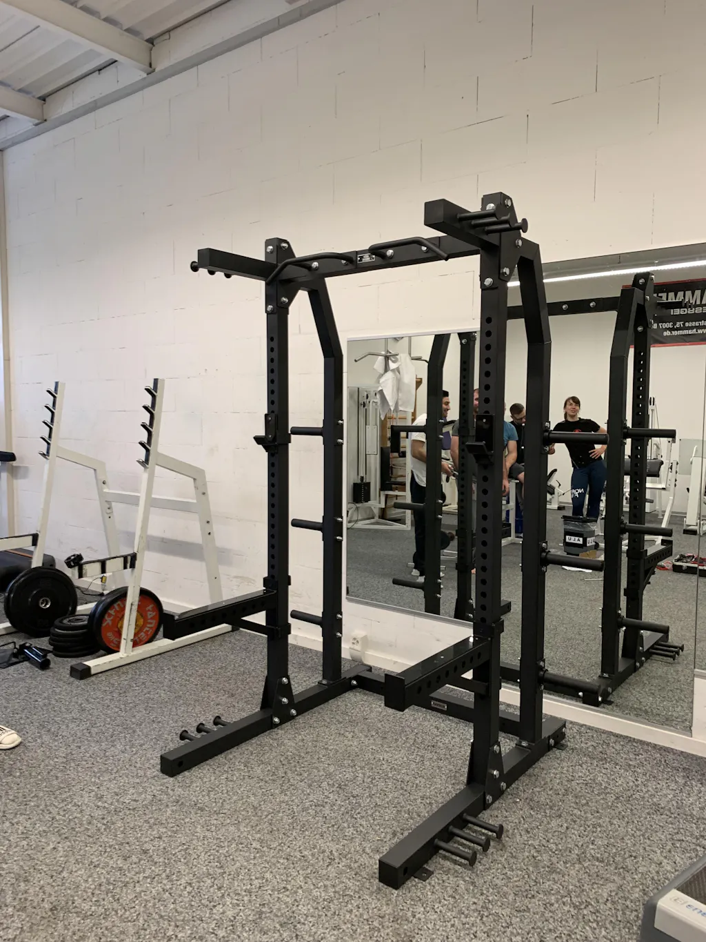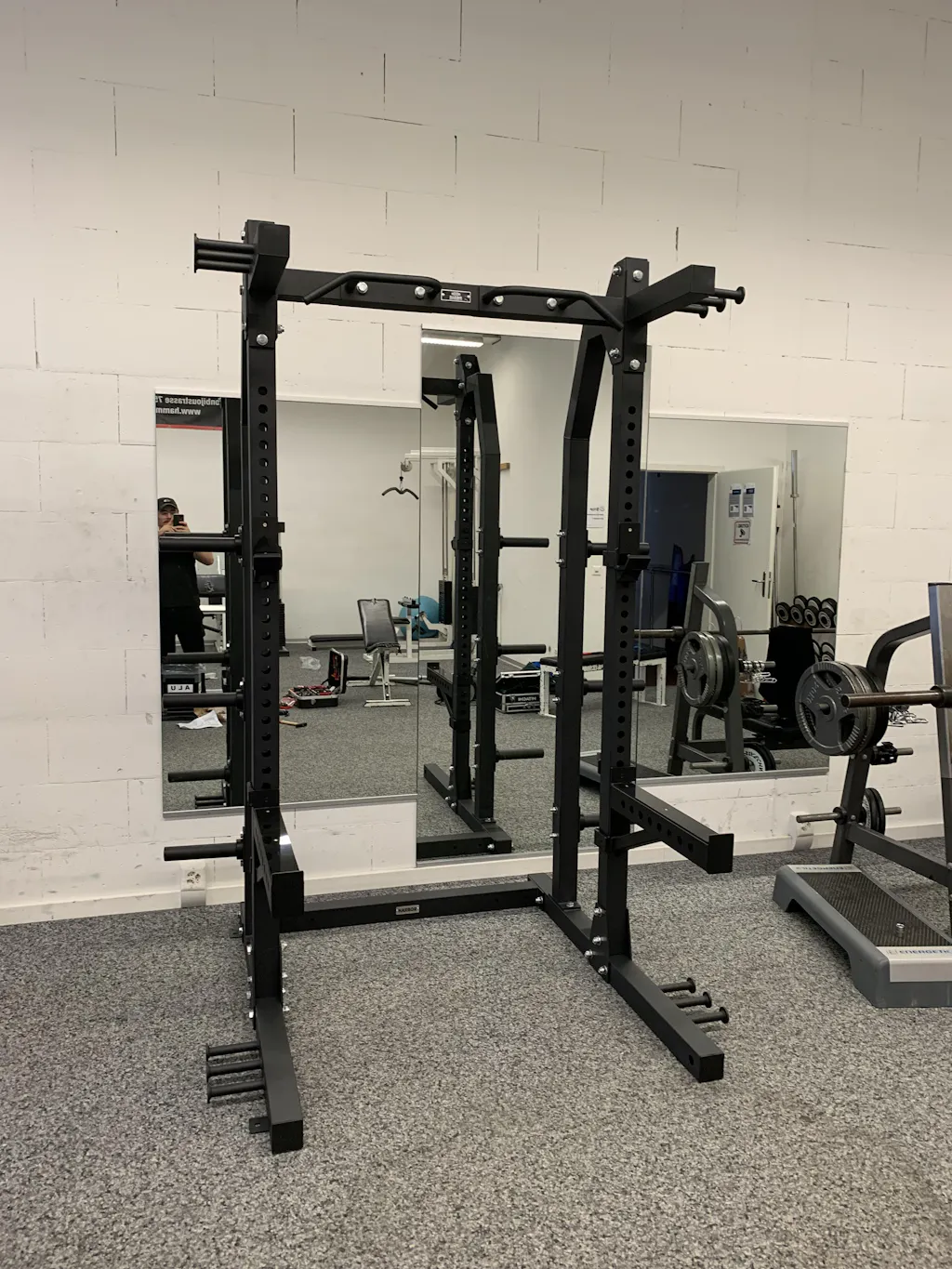 The Heavy Half Rack combines the stability of a power cage with the space-saving design of a half rack—ideal for anyone who wants to train seriously. The solid 75 x 75 mm square tubes and a weight of 125 kg ensure rock-solid stability, even during heavy squats and bench presses. With 107.5 cm of space between the main frames, you have plenty of room inside for all the essential basic exercises.