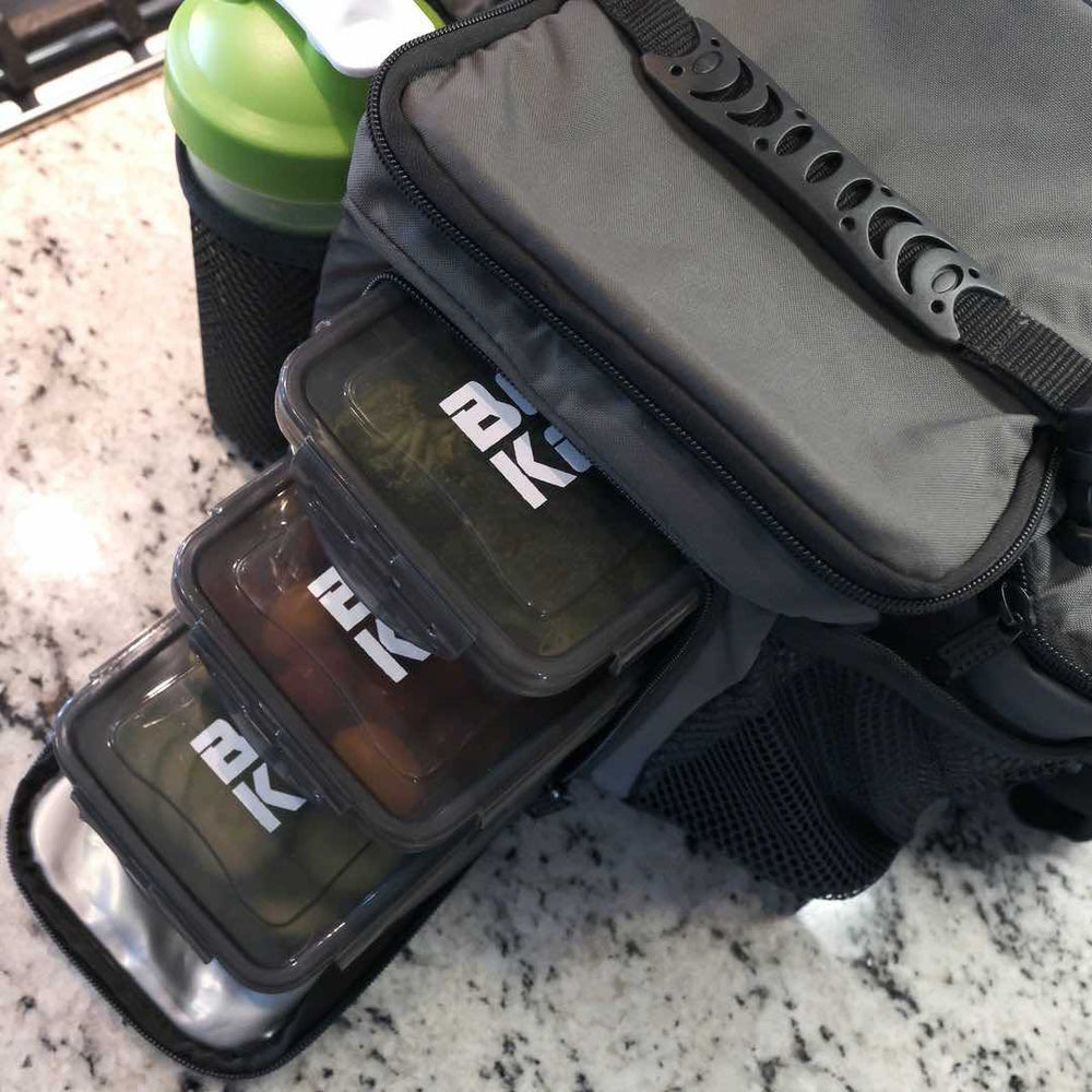 - Meal prep bag with 3 food storage containers (microwave- and dishwasher-safe), 2 ice packs, and insulated inner pockets