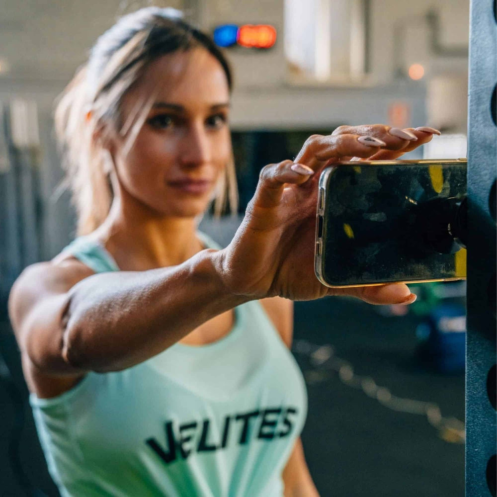 The Velites Magnetic Mobile Holder is a compact, sturdy, and practical companion for your workouts. Designed to securely attach your phone to the rack while you exercise, it keeps your phone within easy reach so you can record your workout progress, use your own timer, or play your music. Of course, you can also use it outside the gym—anywhere there’s a magnetic surface to attach it to!