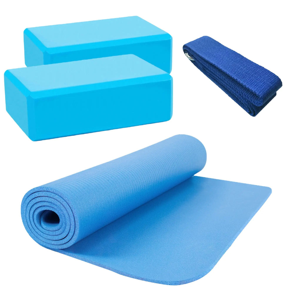 - The same set is also available with a 5 mm thin standard yoga mat: Yoga Set (1 yoga mat, 2 blocks, 1 strap)