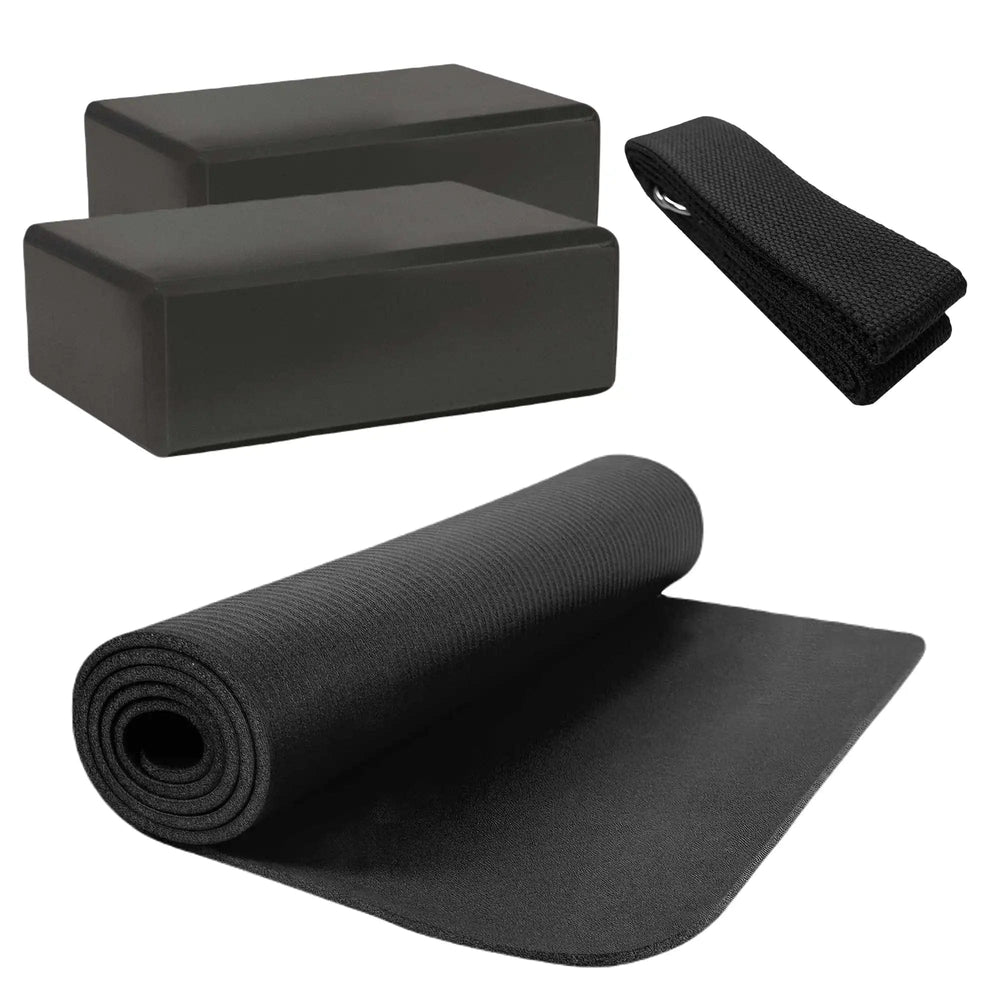 Fitness and Yoga Set (1 mat, 2 blocks, 1 strap) - Black is in stock and will ship as soon as it is available again