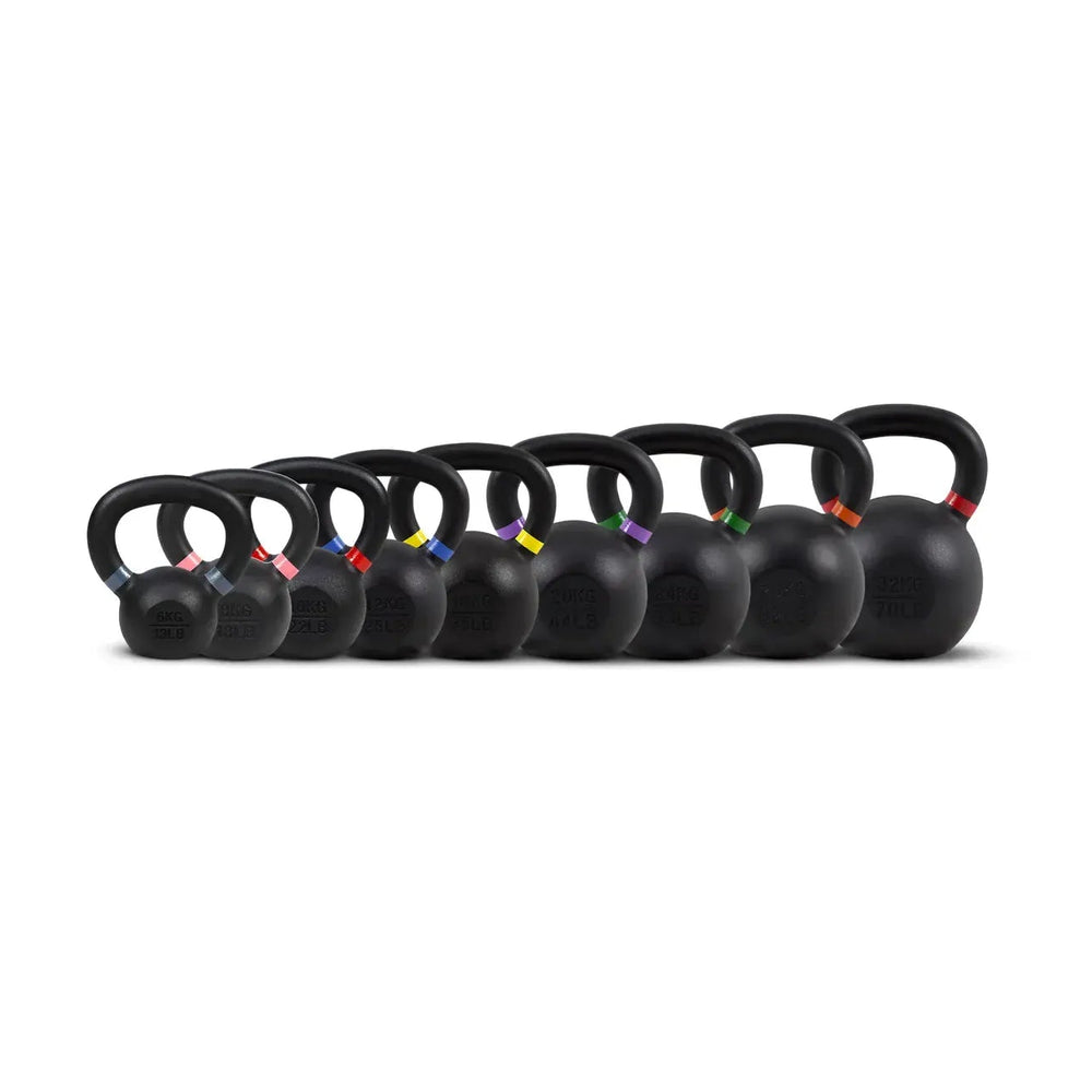 - Ensemble de kettlebells comprenant 1 kettlebell de 6 kg, 1 de 8 kg, 1 de 10 kg, 1 de 12 kg, 1 de 16 kg, 1 de 20 kg, 1 de 24 kg, 1 de 28 kg et 1 de 32 kg
