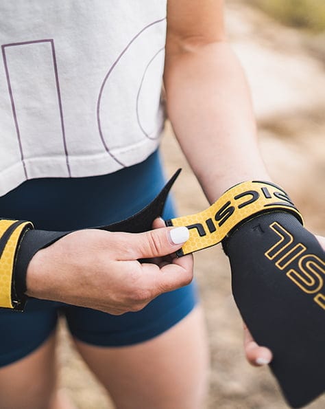 Dein Körpergewicht hängt somit direkt an den Grips und an deinem Handgelenk, statt an deinen Fingern. Dadurch hast du einen viel stärkeren Grip und sparst Energie, weil du dich kaum an der Stange festhalten musst.