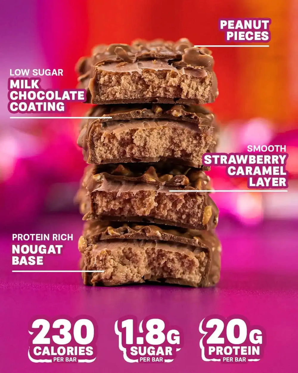 - Irrésistiblement délicieuse, étonnamment pauvre en sucre : la meilleure barre protéinée au monde !
