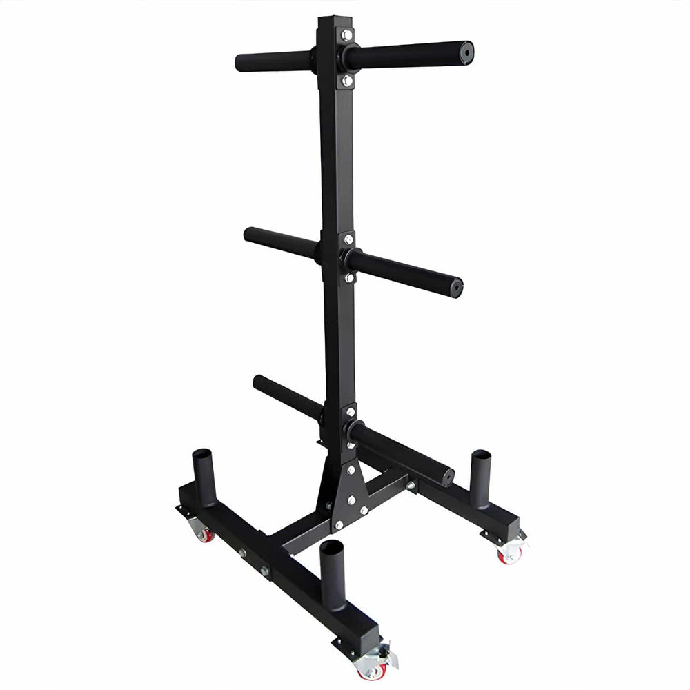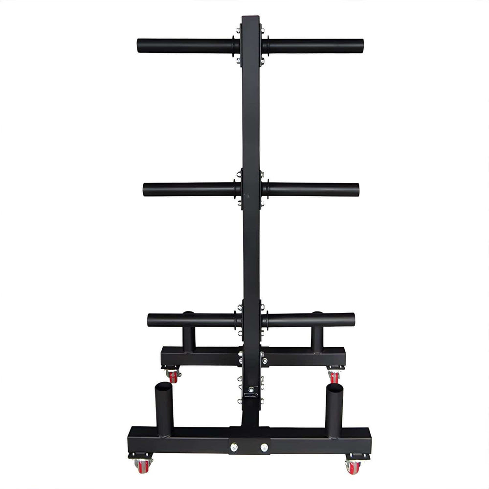 Le support pour disques d'haltères offre six emplacements pour les disques répartis sur trois niveaux et est compatible avec tous les disques conformes aux normes de l'IWF. Grâce à son design peu encombrant, vous optimisez l'espace dans votre salle de sport sans compromettre la stabilité. Des roulettes montables en option offrent une flexibilité maximale, vous permettant de positionner le support exactement là où vous en avez besoin.