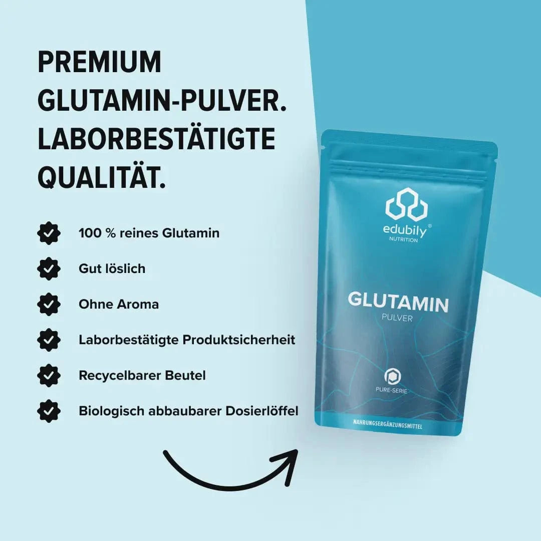 PURE Glutamin Pulver von Edubily – 100% reines L-Glutamin