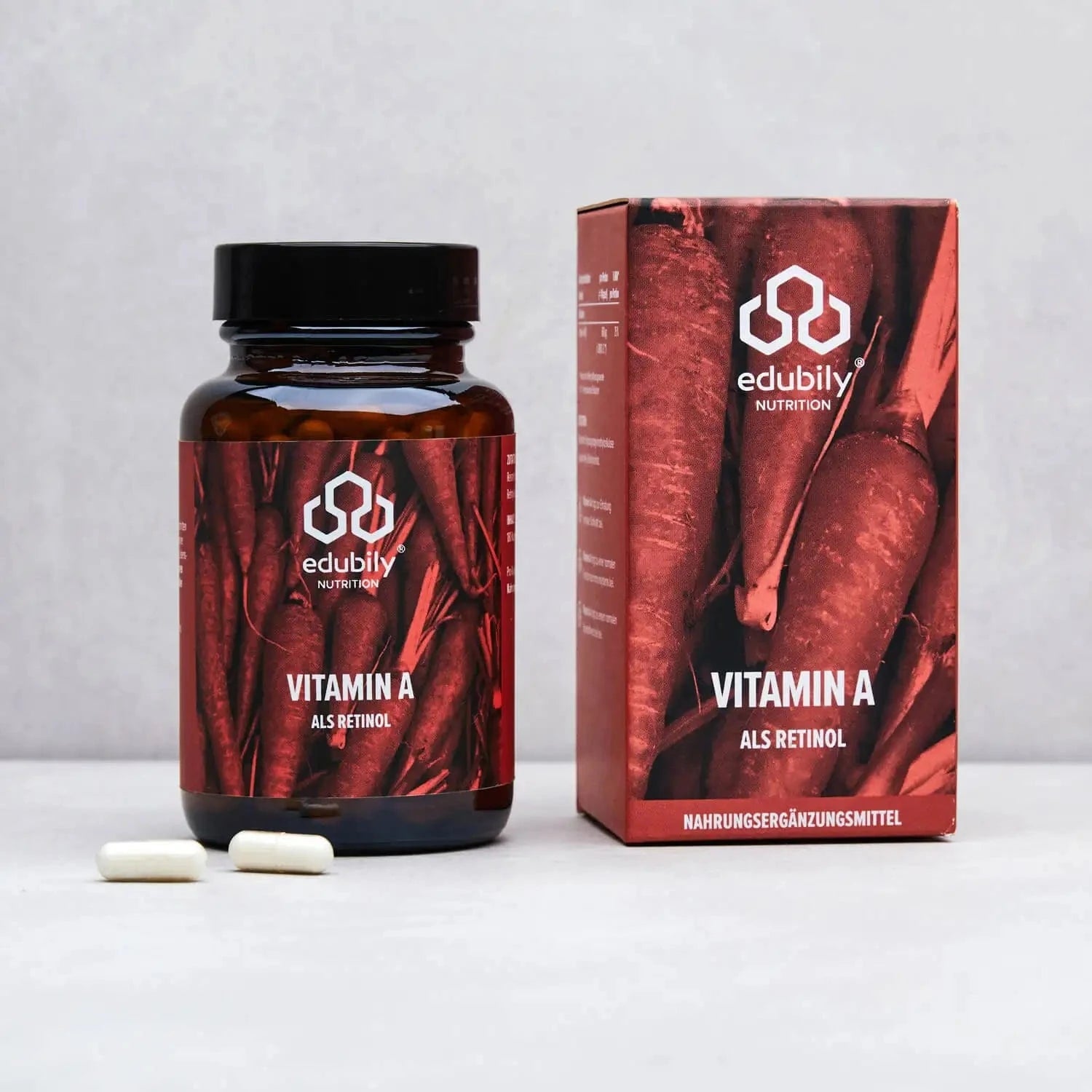 Vitamin A ist ein wichtiges Vitamin, mit mehreren Funktionen im Körper. Es trägt zur Erhaltung normaler Haut, Sehkraft und Schleimhäute bei, sowie zur normalen Funktion des Immunsystems. Edubily bietet Vitamin A als hochbioverfügbares Retinol und lässt dir die Wahl zwischen zwei praktischen Darreichungsformen: Kapseln und Tropfen.