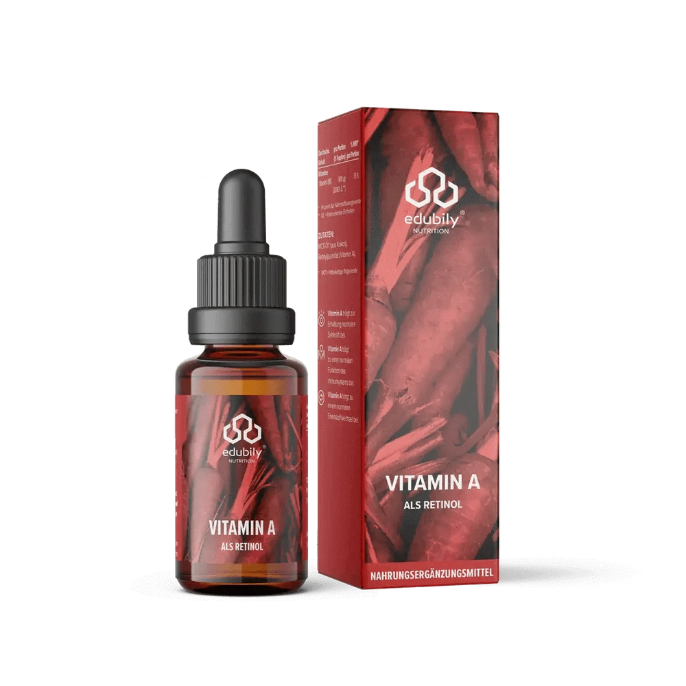 Vitamin A ist ein wichtiges Vitamin, mit mehreren Funktionen im Körper. Es trägt zur Erhaltung normaler Haut, Sehkraft und Schleimhäute bei, sowie zur normalen Funktion des Immunsystems. Edubily bietet Vitamin A als hochbioverfügbares Retinol und lässt dir die Wahl zwischen zwei praktischen Darreichungsformen: Kapseln und Tropfen.
