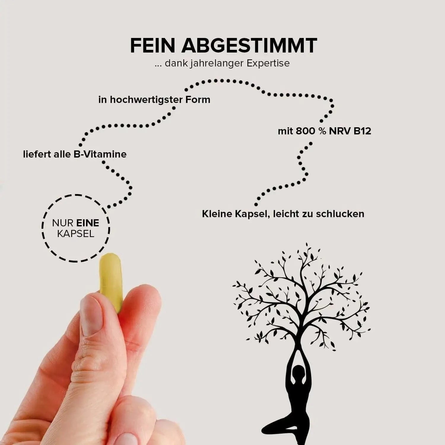 • Hochdosierter Vitamin-B-Komplex mit 8 essentiellen B-Vitaminen