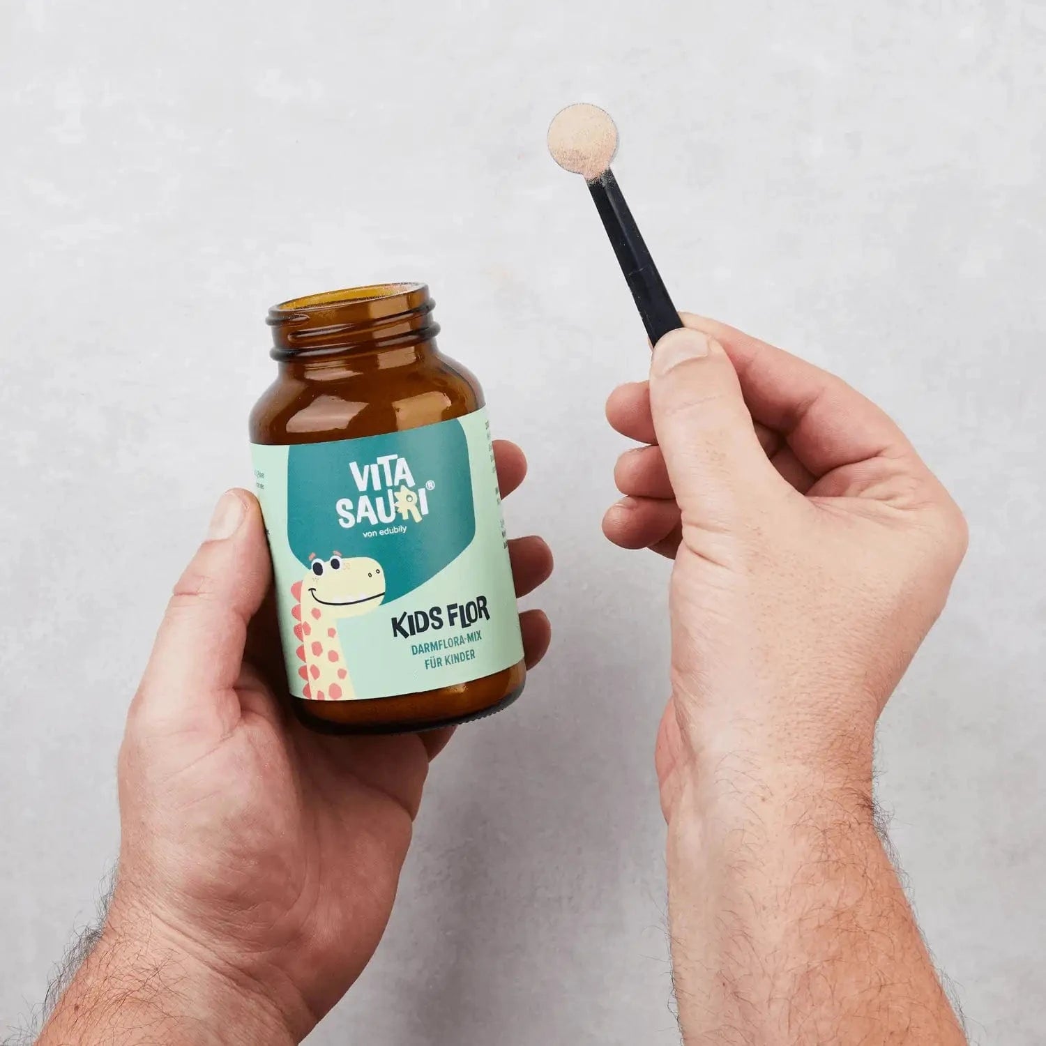 Ein gesundes Darm-Mikrobiom ist essenziell für die Entwicklung von Kindern. Das Vitasauri Kids Flor wurde gezielt entwickelt, um die Darmflora von Babys und Kindern sanft und effektiv zu unterstützen. Mit einer speziell zusammengestellten Kombination aus 10 hochwertigen Bakterienstämmen fördert es ein natürliches Gleichgewicht der Darmflora – sowohl kurzfristig als auch langfristig.