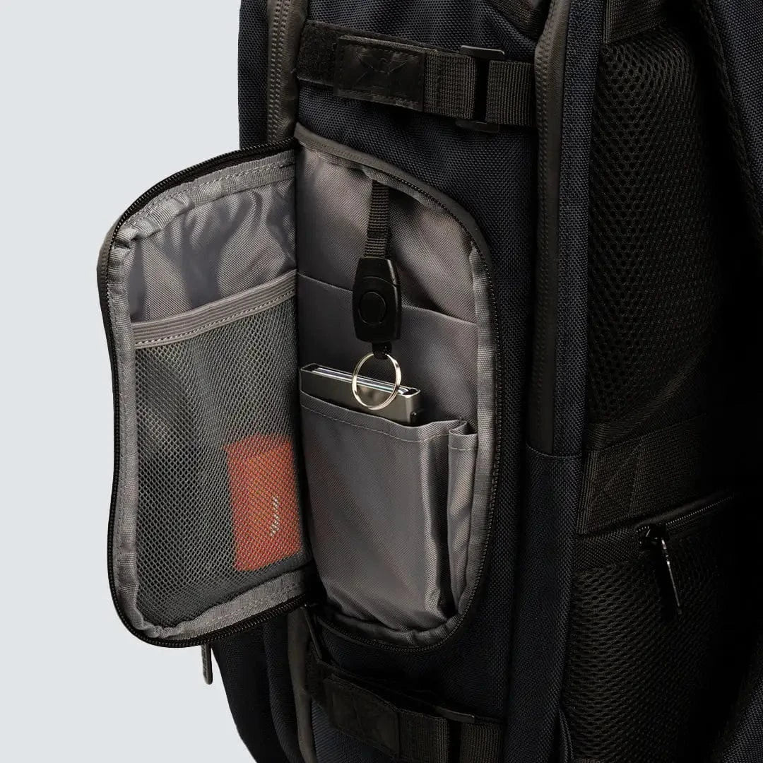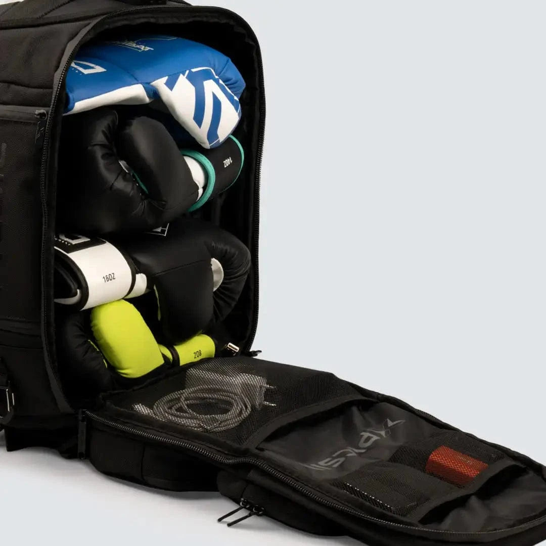 Der Maverick bietet dir eine Vielzahl an Fächern für jede Situation: Ein gepolstertes Laptop- und Tabletfach schützt deine Technik, während das separate Fach für Schuhe oder schmutzige Wäsche das Innere sauber hält. Zwei Fronttaschen – eine davon mit Isolierung – sind perfekt für Essen, Getränke oder kleine Tools. Ein seitliches Fach nimmt deine Trinkflasche auf, während ein zusätzliches Fach für Ausweis, Schlüssel oder Portemonnaie bereitsteht. Dank des integrierten USB-Ports kannst du unterwegs dein Smartphone laden, und innenliegende Klettlaschen sichern deinen Gewichthebergürtel oder andere Ausrüstung.