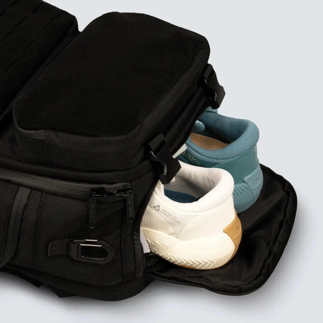 - Separate Fächer für Laptop, Sportausrüstung und Schuhe